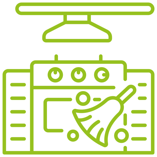 Disinfection and cleaning of surfaces, appliances, and cabinets. Cleaning stoves and ovens.
